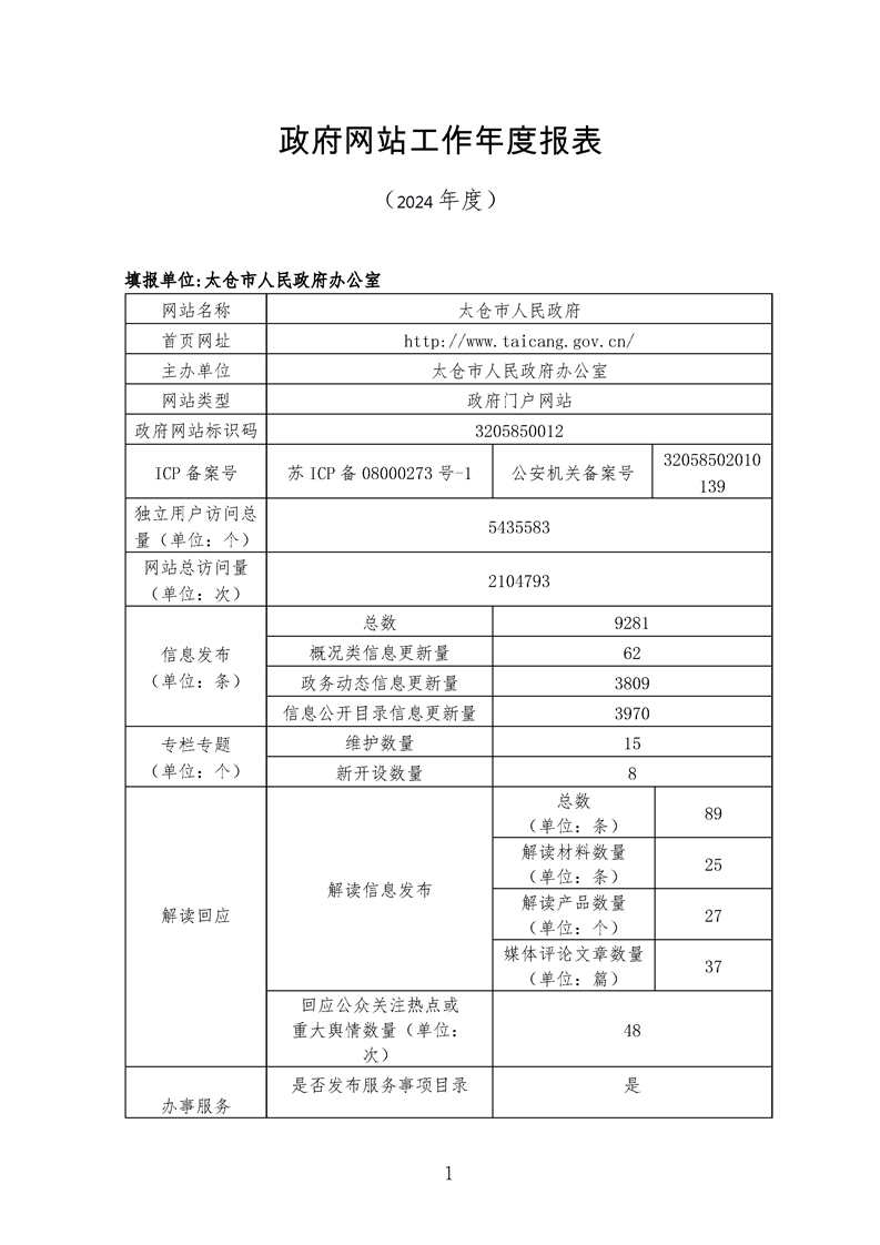 2024年太倉(cāng)市政府網(wǎng)站年度工作報(bào)表